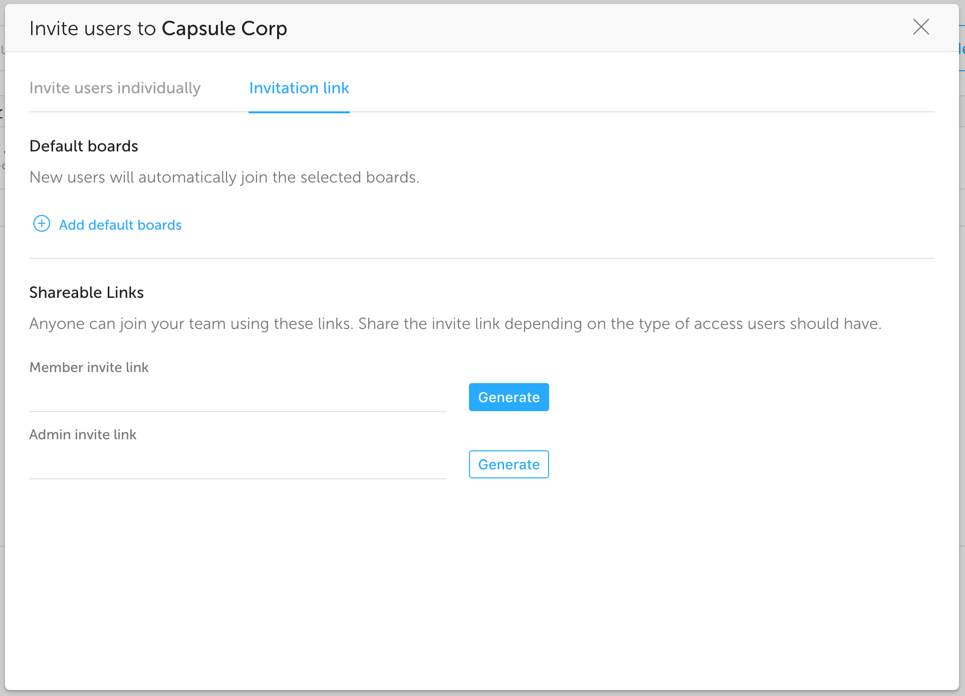 If you don't feel like entering names and emails at all, you can also Generate a link to share with your team so everyone can sign up to it by themselves.