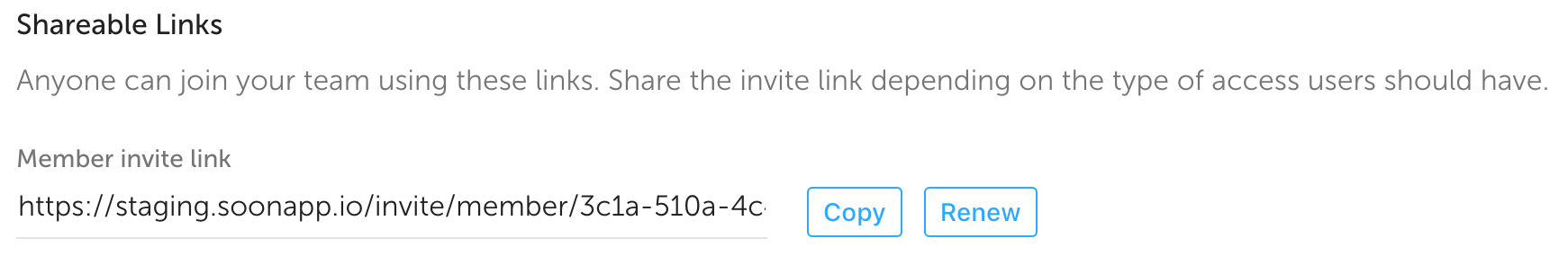 Just copy the link and drop it in your Slack, WhatsApp or other channel. Do keep in mind that there is a different link for Members and Admins.