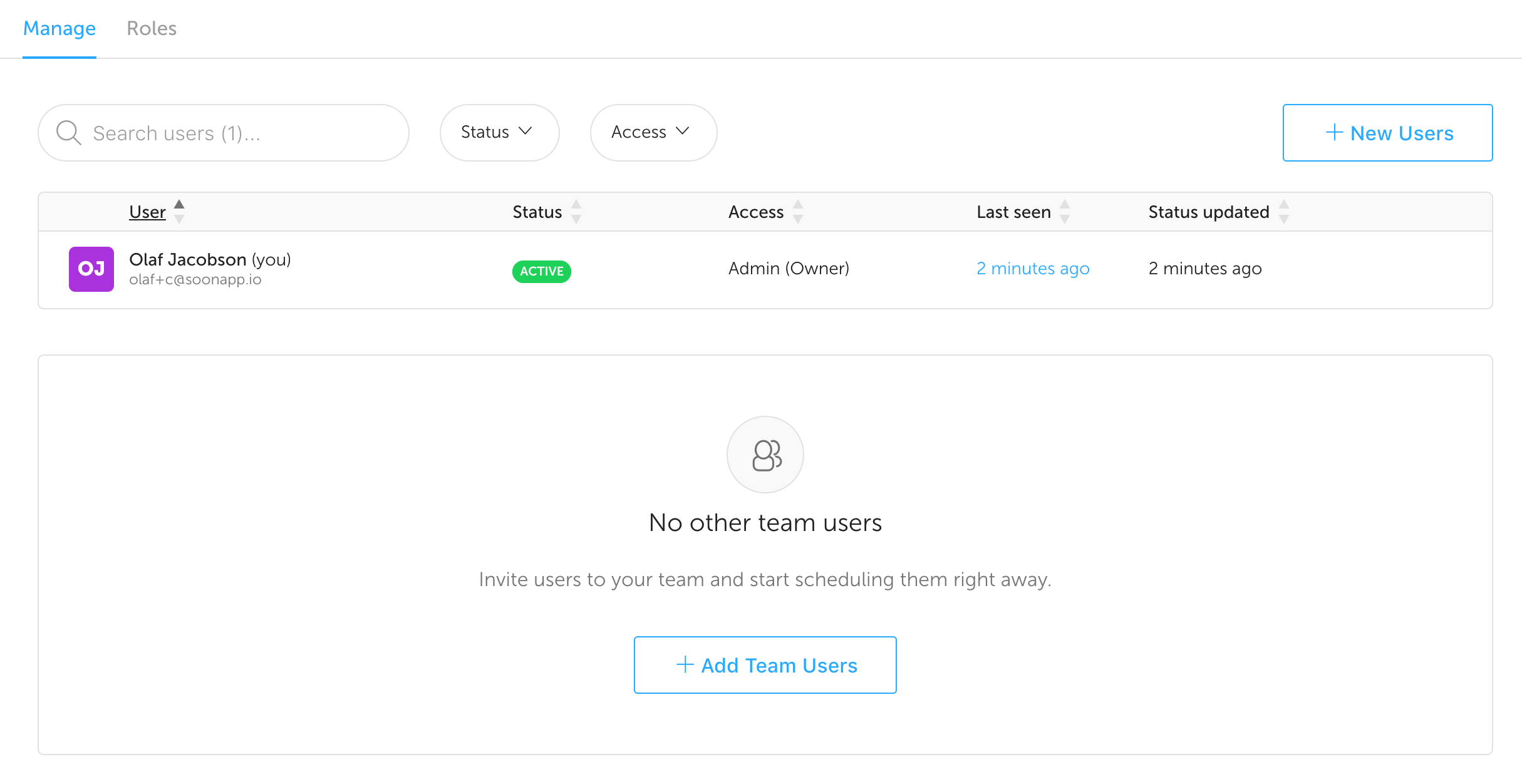 Soon is meant for teams and built around collaborative scheduling. To add people to your team you can either have them sign up as Admin or Member.