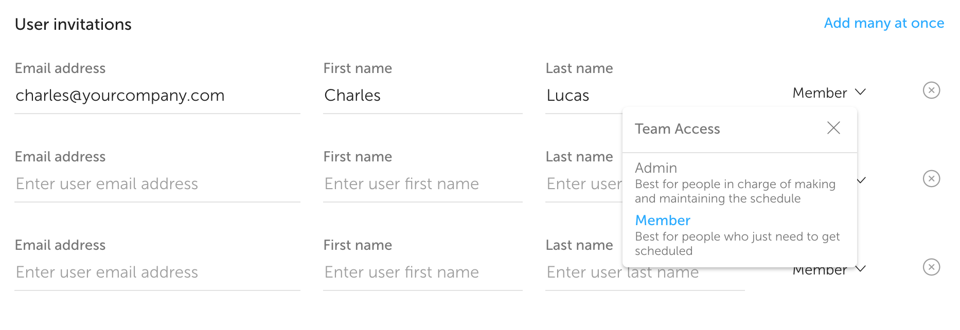 Pro tip: If you have to enter a lot of email addresses, try using Add many at once. When everything looks good you can send out the invites 📬!