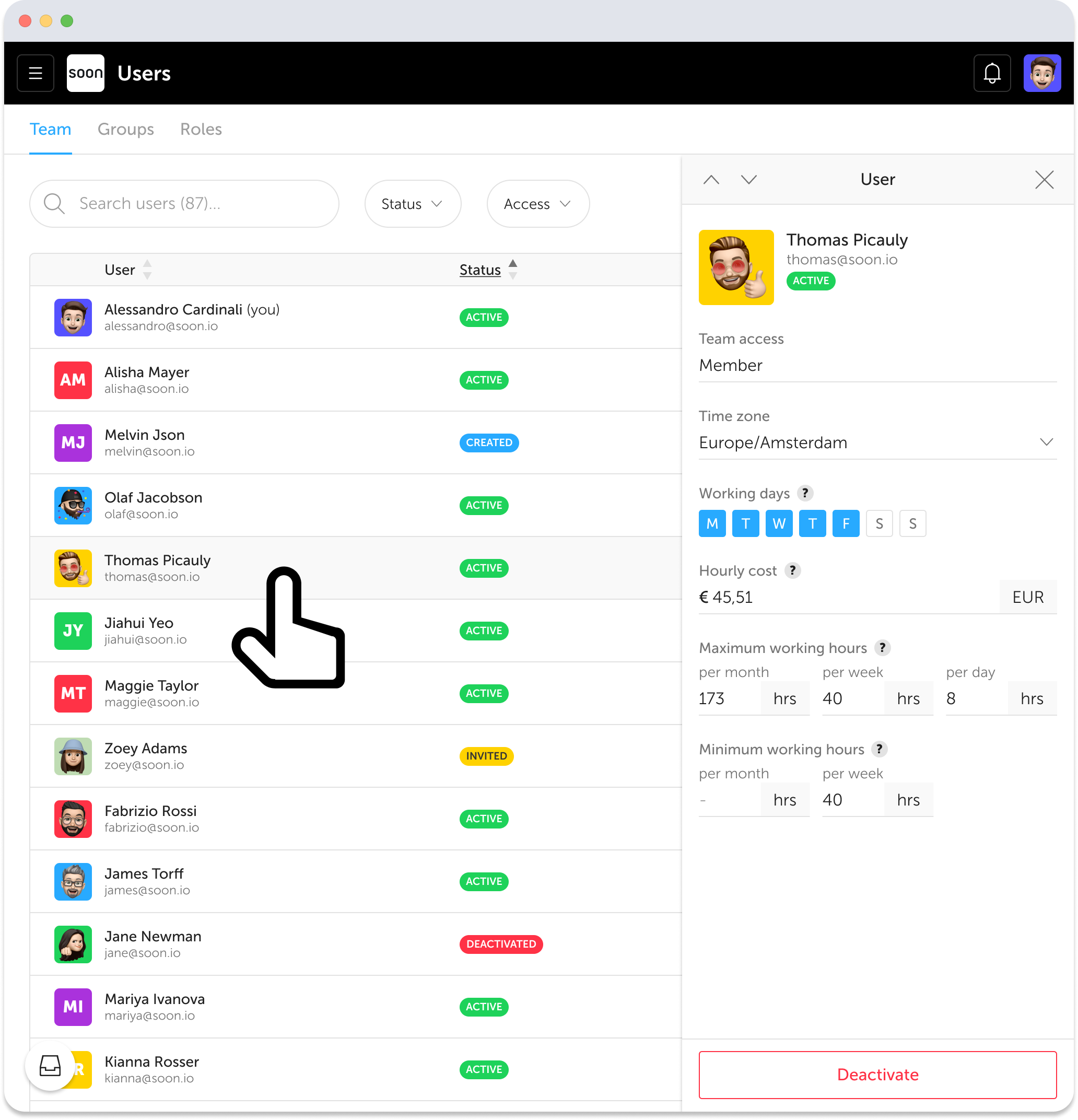 - You’ll see a list of all your team members. Click on the user whose contract settings you want to update.